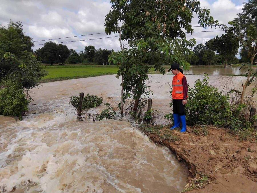 ชัยภูมิ- พายุทาจิกิฝนกระหน่ำหนักในหลายพื้นที่ น้ำป่าทะลักซัดฝายกักเก็บน้ำอ่างฝ่ายใหม่ ต.บ้านแก้ง แตก ทะลักท่วมนาข้าวเสียหายกว่า500ไร่