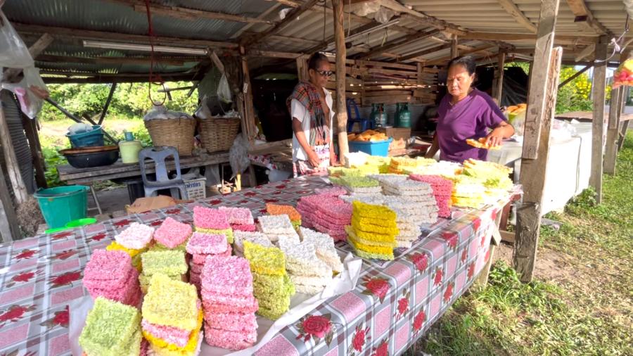 ส่วน นางสายพิน คงนคร อายุ 63 ปี ชาวบ้านอีกราย ก็บอกว่า ตนเองทำขนมเดือนสิบขายทุกปีเช่นกัน และปีนี้คาดว่าจะขายได้มากกว่าปีที่แล้ว หรือไม่ต่ำกว่า 30000 บาท ส่วนลูกค้าก็จะมีทั้งขาประจำที่สั่งไว้ข้ามปี และขาจร