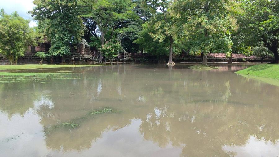 นายภาคภูมิ อยู่พูล หัวหน้าอุทยานประวัติศาสตร์พิมาย อ.พิมาย จ.นครราชสีมา เปิดเผยว่า หลังจากฝนตกหนักหลายชั่วโมงในช่วงกลางดึกที่ผ่านมา ทำให้มีน้ำท่วมขังภายในบริเวณอุทยานประวัติศาสตร์พิมาย (ปราสาทหินพิมาย)และพื้นที่โดยรอบปราสาท ระดับน้ำสูงกว่า 20-30 เซนติเมตร