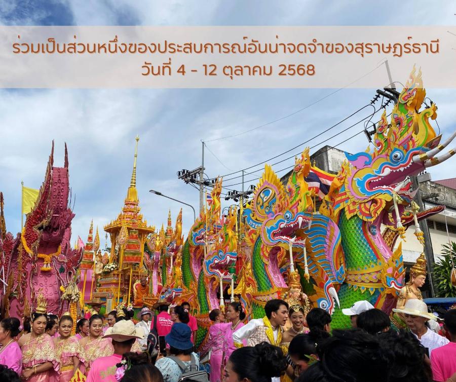 ในวันที่ 8 ตุลาคม 2568 (แรม 1 ค่ำ เดือน 11) จะมีขบวนแห่ เรือพนมพระ ทางบกกว่า 100 ลำ ที่ตกแต่งอย่างวิจิตรอลังการ พร้อมขบวนนางรำและขบวนนางลาก ส่วนวัดที่อยู่ติดแม่น้ำตาปีจะชักพระทางน้ำ สร้างภาพที่งดงามเหนือสายน้ำให้ผู้ชมได้ร่วมทำบุญและชื่นชม