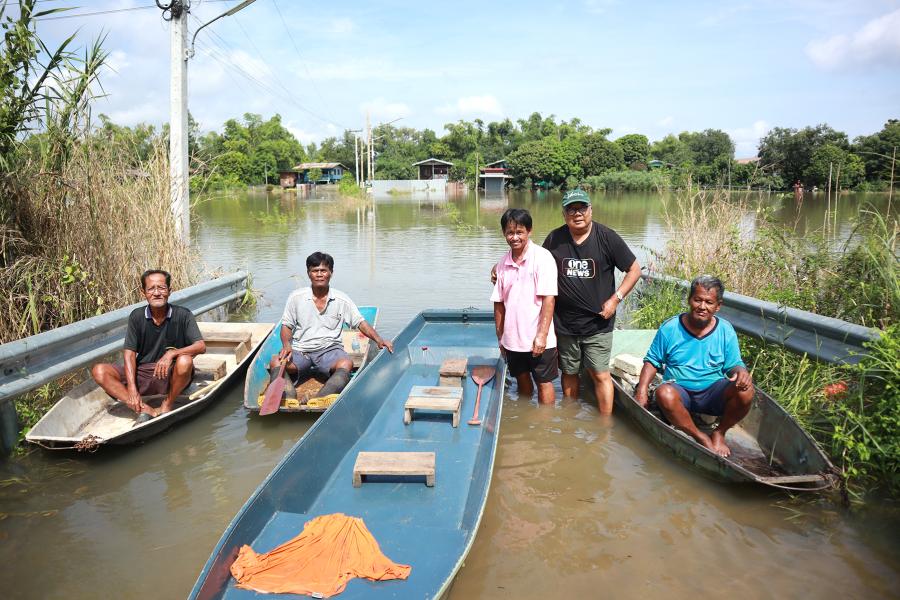นายวินัย พรศิริ อายุ 55 ปี อยู่บ้านเลขที่ 15 หมู่ 10 บ้านวังปลาทู ต.กำแพงดิน อ.สามง่าม จ.พิจิตร และเป็น อบต.กำแพงดินได้พายเรือพาผู้สื่อข่าวดูสถานการณ์น้ำท่วมในพื้นที่ของหมู่บ้านวังปลาทู ซึ่งเป็นหมู่บ้านที่ตั้งอยู่ริมแม่น้ำยมทั้งสองฝั่ง มีบ้านเรือนที่ปลูกสร้างอยู่ริมแม่น้ำยมประมาณ 200 หลังคาเรือน โดยตั้งแต่เมื่อวันที่ 25 ส.ค. 68 ที่ผ่านมา น้ำในแม่น้ำยมได้เอ่อล้นตลิ่ง ทำให้น้ำท่วมวัดวังปลาทู ซึ่งมีพระอยู่จำวัด 6 รูป