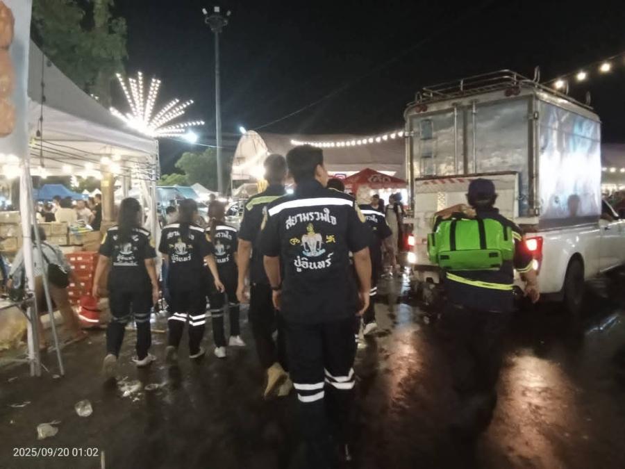 ที่เกิดเหตุงานประเพณีบุญสารทเดือนสิบ ปี2568 มีประชาชนและนักศึกษาจำนวนมาก บริเวณหน้าเวทีคอนเสิร์ตจากศิลปิน พบผู้ได้รับบาดเจ็บ 5-6 ราย สภาพมีแผลถูกอาวุธมีดแทงเลือดอาบ ทีมอาสาสมัครกู้ภัยจึงเข้าช่วยเหลือนำตัวส่งโรงพยาบาล