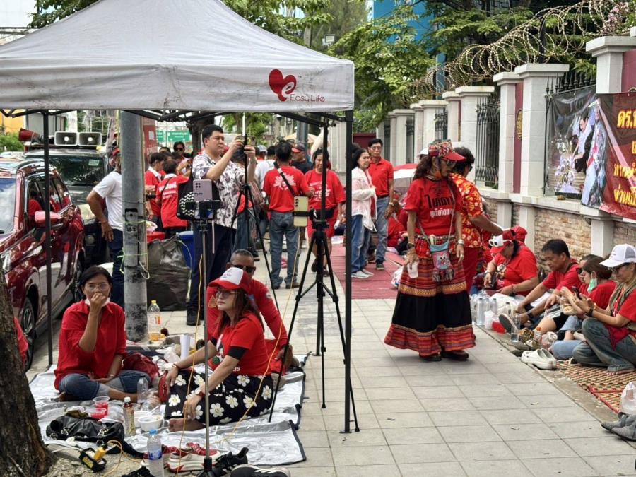 กลุ่มคนเสื้อแดงรวมพลังให้กำลังใจ ”ทักษิณ” จัดกิจกรรมกินข้าวเย็นหน้าเรือนจำ