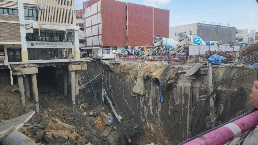 วันนี้ (25 ก.ย. 68) เจ้าหน้าที่ได้มีการปรับแผน จากเดิมที่ใช้ รถเครนในการยกแผ่นชาร์ปด้านในหลุมออกมา แต่เนื่องจากติดเหล็ก และวัตถุอื่น ๆ ด้านในหลุม จึงปรับแผนเป็นการเทปูนลงไปรุดรูด้านใน ซึ่งได้ทยอยเคลียร์พื้นที่ นำรถเครนออก เพื่อให้รถปูนเข้ามาในพื้นที่ได้ ซึ่งใช้รถปูน 100 คัน แต่ละคันจะเทปูนประมาณ 500 ลูกบาศก์เมตร ลงไปในหลุม เพื่ออุดรูบริเวณอุโมงค์ ซึ่งจะสูงขึ้นมา 3 เมตร