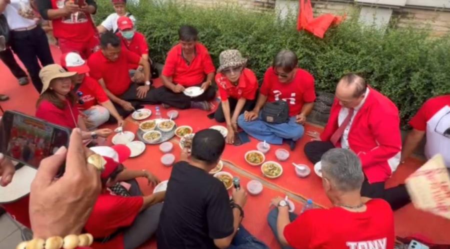 คนเสื้อแดงล้อมวงกินแกงส้ม-ต้มยำหนูหน้าคุกคลองเปรมส่งให้ ”ทักษิณ”