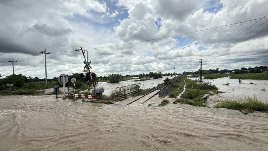 น้ำท่วมรางรถไฟขาดที่บ้านเหลี่ยมโคราช ปรับแผนเดินรถอีสาน-กทม.