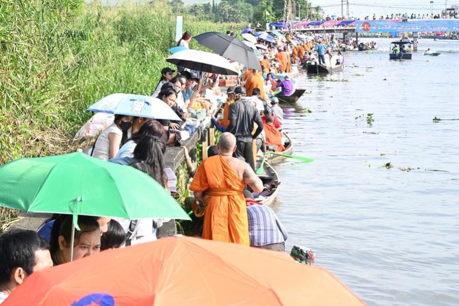 คึกคัก!ชาวลาดกระบังพร้อมใจตักบาตรพระร้อยทางเรือสืบสานวิถีมอญคู่คลองลำปลาทิว