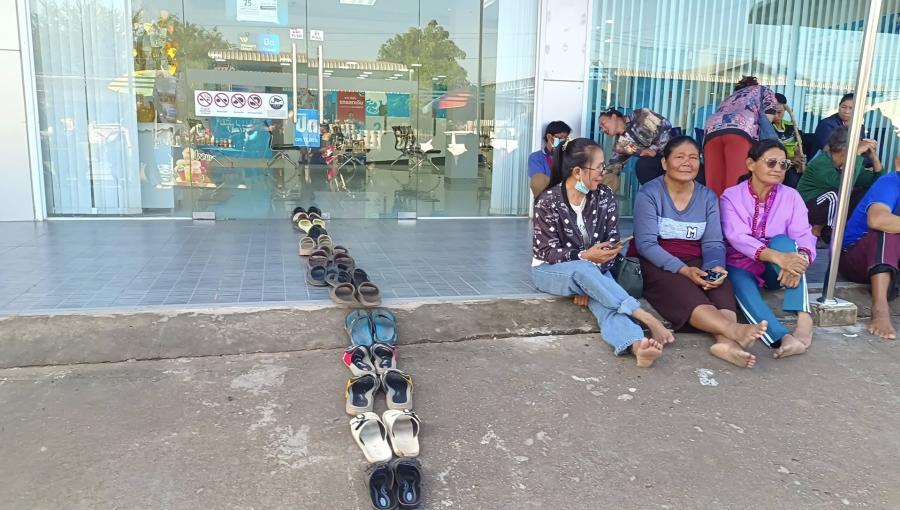 ชาวชัยภูมิวางรองเท้าจองคิวลงทะเบียน ”คนละครึ่งพลัส” แน่นธนาคาร
