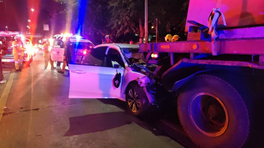 สลด!เก๋งพุ่งชนท้ายพ่วง 18 ล้อ กลางถนนประชาชื่นดับ 1 เจ็บ 3