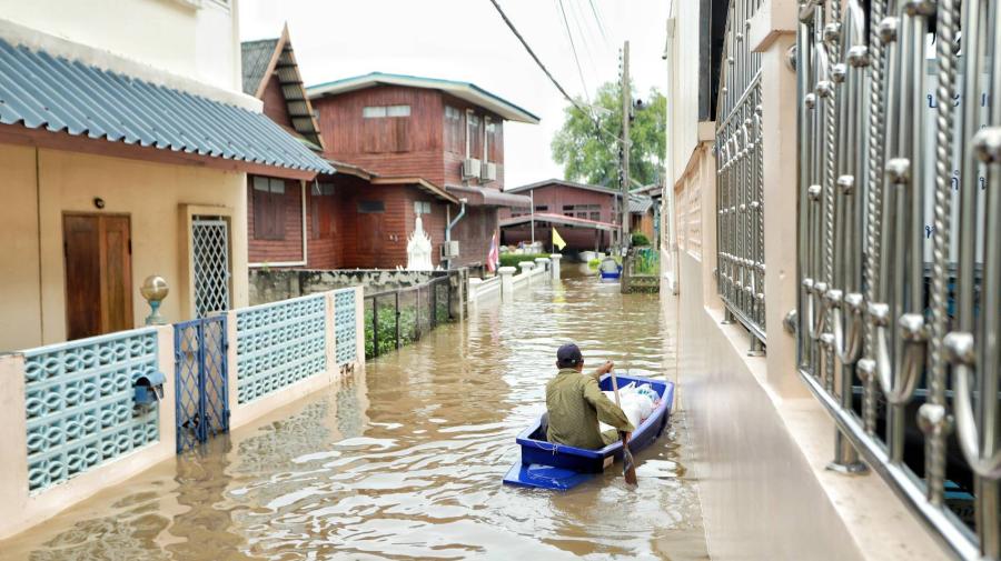 ที่บริเวณหมู่ที่7 ต.เชียงรากใหญ่ อ.สามโคก จ.ปทุมธานี พบบ้านเรือนประชาชนที่อยู่ริมน้ำเจ้าพระยาถูกน้ำในน้ำไหลเข้าท่วมสูงกว่า1.50เมตร โดยที่ชุมชนบ้านท้องคุ้ง ชาวบ้านต้องใช้เรือพายสัญจรเข้าออกบ้าน เพื่อมาขึ้นรถในสถานที่ๆปลอดภัย ท่ามกลางกระแสน้ำเจ้าพระยาที่ไหลเชี่ยวกราด