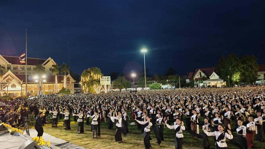 และนางรำจากทั้ง 22 อำเภอของจังหวัดศรีสะเกษ จำนวนกว่า 5000 คน ได้ร่วมรำถวายอาลัยสมเด็จพระนางเจ้าสิริกิติ์ พระบรมราชินีนาถ พระบรมราชชนนีพันปีหลวง อย่างอ่อนช้อย สง่างาม และพร้อมเพรียง และจุดเทียน “ร้อยดวงใจ ถวายอาลัย แด่พระพันปีหลวง” สว่างไสวทั่วทั้งลานสนาม สะท้อนถึงความจงรักภักดีและความสามัคคีของชาวศรีสะเกษ ที่รวมพลังแสดงความกตัญญูต่อพระองค์