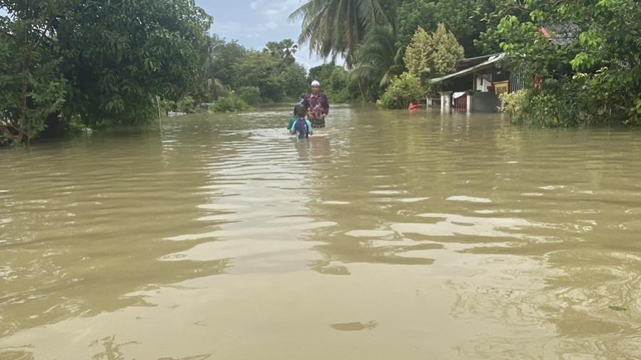 เมื่อวันที่ 26 พ.ย. สถานการณ์น้ำท่วมในพื้นที่จังหวัดนราธิวาสเข้าสู่ภาวะวิกฤต หลังมีฝนตกหนักกระจายทั่วทั้ง 13 อำเภอตลอดหลายวันที่ผ่านมา ส่งผลให้พื้นที่ต้นน้ำสำคัญอย่างอำเภอสุไหงโก-ลกและอำเภอแว้งเฝ้าระวังเป็นพิเศษ โดยที่ อ.แว้ง มีการติดตั้ง ธงสีเหลือง ตลอดแนวแม่น้ำ เพื่อเตือนประชาชนริมตลิ่งให้เตรียมอพยพ หลังระดับน้ำในแม่น้ำโก-ลกเพิ่มขึ้นต่อเนื่อง เหลือห่างจากตลิ่งเพียง 0.35 เมตร