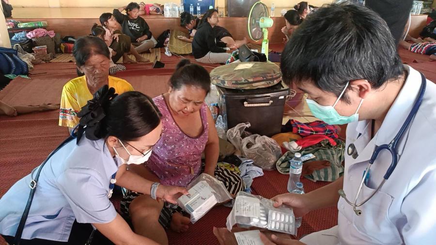 ซึ่งได้จัดกำลังเจ้าหน้าที่ฝ่ายปกครอง ตำรวจ ทหาร สาธารณสุข อส. และอาสาสมัครจากทุกภาคส่วน เข้าประจำการตลอด 24 ชั่วโมง เพื่อให้การช่วยเหลือเป็นไปอย่างรวดเร็ว มีประสิทธิภาพ และลดความกังวลของผู้ประสบเหตุให้มากที่สุด โดยพบว่ามีชาวบ้านและผู้นำท้องถิ่นท้องที่นำสิ่งของข้าวสารอาหารแห้ง พืชผัก น้ำดื่มสะอาดมาบริจาคให้ผู้อพยพตลอดเวลา