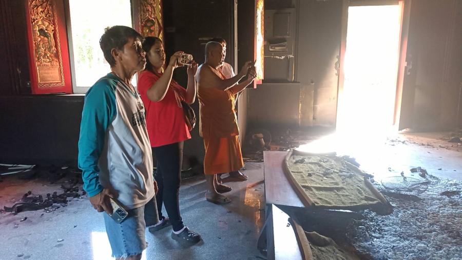 ปราจีนบุรี- ชาวบ้านร้องทุกข์!ปริศนาไฟไหม้ในโบสถ์ไม่มีใครรู้เห็นสะเทือนใจพุทธศาสนิกชนพบริมหน้าต่างโบสถ์ด้านนอกภายในโบสถ์ถูกไฟไหม้บริเวณหน้าพระประธานที่มีพรมปูทันพื้นกระเบื้องถูกไฟไหม้เสียหายขนาดกว้าง4x5เมตร แผ่นกระเบื้องที่ถูกความร้อนเผาแตกร้าวขึ้นมาหลายแผ่น พระพุทธรูปถูกไฟเผาไหม้ล้มลงจำนวน2องค์