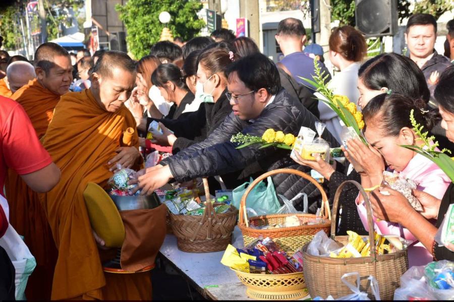 ชาวศรีสะเกษพร้อมใจทำบุญตักบาตร 109 รูป ถวายเป็นพระราชกุศล รับปีม้าทอง