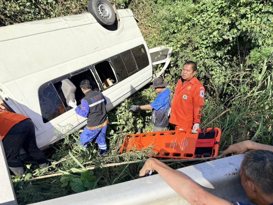 ดับ 2 เจ็บ 14 รถตู้หลับในพุ่งตกถนนสาย 304 โค้งมรณะอุดมทรัพย์