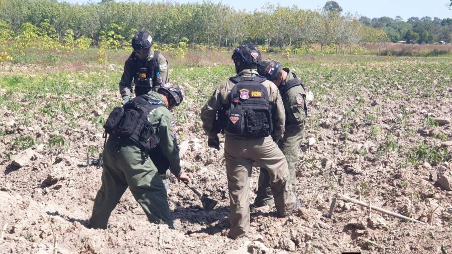 ตำรวจศรีสะเกษระดมชุด EOD เก็บกู้–ทำลายกระสุนปืนใหญ่หลายจุดในอำเภอกันทรลักษ์