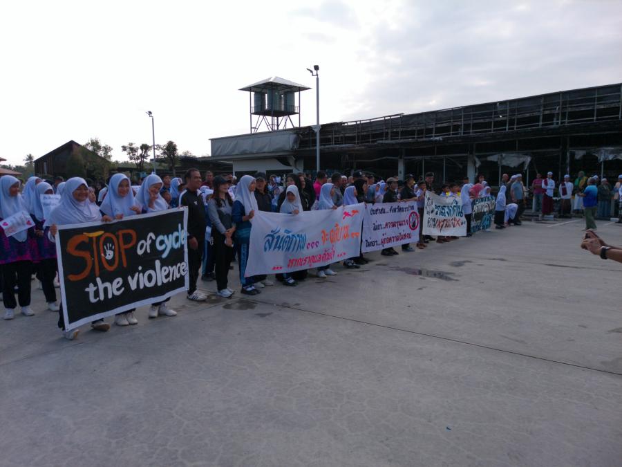 การเดินขบวนของพี่น้องประชาชน นักเรียนนักศึกษา วันนี้ จะเห็นได้ว่า ทุกคนมีความตั้งใจ เดินถือป้ายรณรงค์ “ไม่เอา ความรุนแรง ไม่เอา ผู้ก่อการความไม่สงบ” โดยเดินขบวนถือป้ายจากโรงเรียนเป็นในระยะทาง 1500 เมตร จากนั้นก็ไปทำการละหมาดฮาญัตเพื่อขอต่ออัลลอฮ์ ให้ประทานในสิ่งที่ปรารถนาสำเร็จเป้าหมายหรือปลดเปลื้องความทุกข์ ที่ปั้มน้ำมันที่ซึ่งเป็นที่เกิดเหตุวางระเบิดจนทำให้ทรัพย์สินเสียหาย