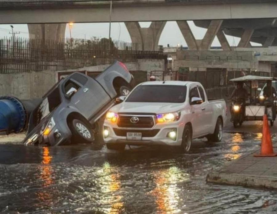 ซ้ำซากไม่จบสิ้น!ถนนพระราม2กระบะหัวทิ่มลงหลุมขนาดใหญ่บริเวณหน้าบิ๊กซ้ง