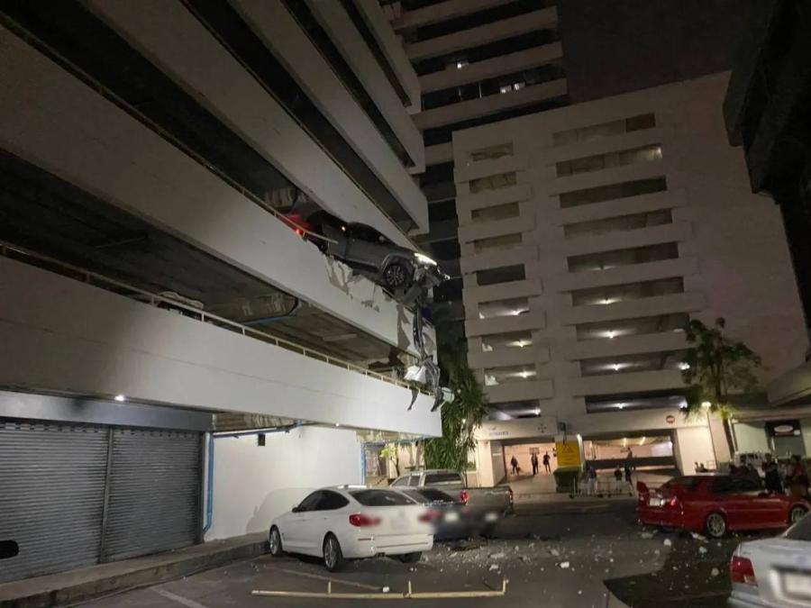 ที่เกิดเหตุเป็นอาคารจอดรถสูง 7 ชั้น บริเวณชั้นที่ 2 พบรถยนต์ยี่ห้อโตโยต้า สีเทา ทะเบียน กรุงเทพมหานคร อยู่ในสภาพพุ่งทะลุกำแพงปูน ค้างอยู่บนขอบอาคาร ลักษณะเสมือนลอยกลางอากาศ สร้างความหวาดเสียวและเสี่ยงต่อการร่วงตกลงสู่พื้นด้านล่าง