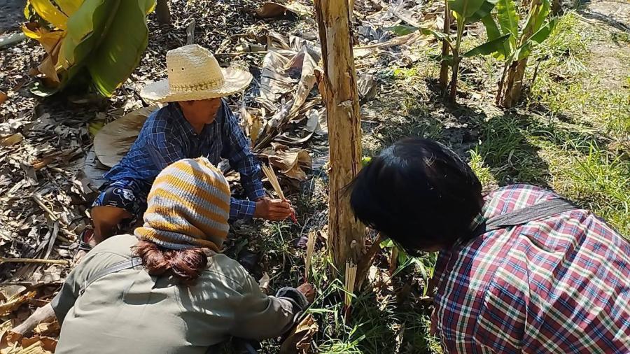 คอหวยไม่พลาด!แห่ขอเลขเด็ดหัวปลีกล้วยโผล่กลางลำต้นหวังเสี่ยงโชค