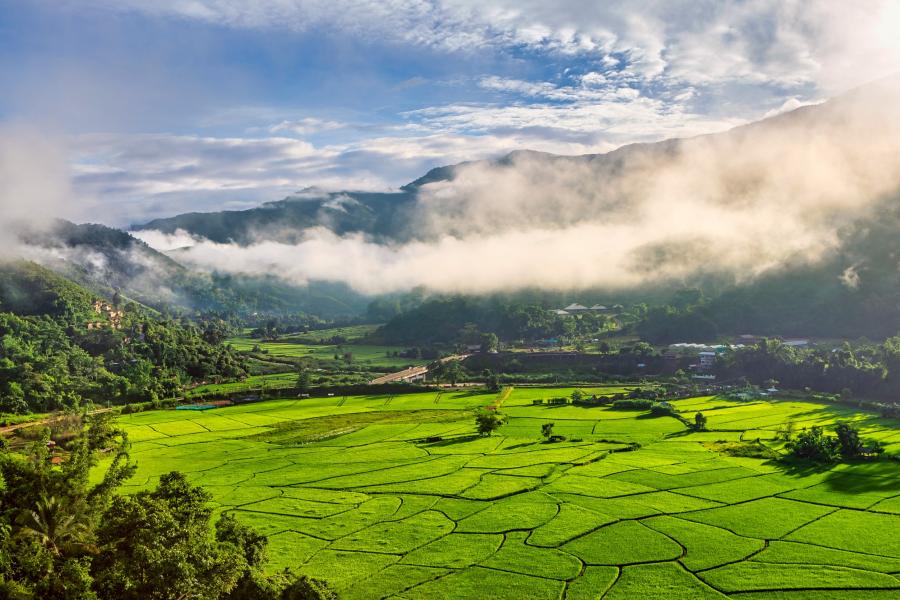 ทางฟากฝั่งภาคเหนือตอนล่างถูกถ่ายทอดผ่านป่าเขาและสายน้ำที่ชวนให้สูดลมหายใจลึก ๆ เริ่มจาก น้ำตกทีลอซู จังหวัดตาก จุดหมายปลายทางที่สะท้อนนิยามของคำว่าอลังการ ด้วยสายน้ำที่ไหลทอดตัวลงมาเป็นชั้นอย่างงดงามท่ามกลางธรรมชาติที่สมบูรณ์ ปักหมุดน้ำตกภูเขาหินปูนขนาดใหญ่ที่ได้ชื่อว่าสวยงามที่สุดของเมืองไทย ซึ่งจะมอบภาพความประทับใจให้ตั้งแต่แรกเห็น ต่อด้วย วัดพระธาตุผาซ่อนแก้ว จังหวัดเพชรบูรณ์ ที่ตั้งอยู่ท่ามกลางขุนเขาสลับซับซ้อนบนเขาค้อ สามารถมองเห็นทิวทัศน์ได้รอบทิศทุกช่วงเวลาของวัน ในเช้าวันอากาศแจ่มใส จะได้เห็นทะเลหมอกลอยละล่องโอบล้อมวัดราวกับอยู่ท่ามกลางสรวงสวรรค์ สะกดสายตาด้วยอุโบสถพระพุทธเจ้า 5 องค์ ที่มีองค์พระพุทธรูปสีขาวนั่งลดหลั่นซ้อนกันลงมา และเจดีย์พระธาตุผาซ่อนแก้ว สิริราชย์ธรรมนฤมิต ที่ประดับตกแต่งอย่างสวยงามด้วยกระเบื้องหลากหลายสี เครื่องประดับ สร้อย กำไล ถ้วยชามเครื่องเบญจรงค์ อย่างวิจิตรบรรจง ฯลฯ และยังมีมุมถ่ายภาพที่สวยงามอีกมากมาย
