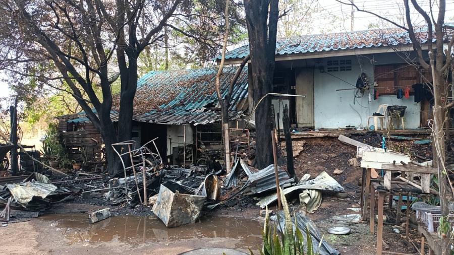 หนีตายระทึก!ไฟไหม้บ้าน 2 สาวกบินทร์บุรี ผวาตื่นนอนหนีได้ทัน