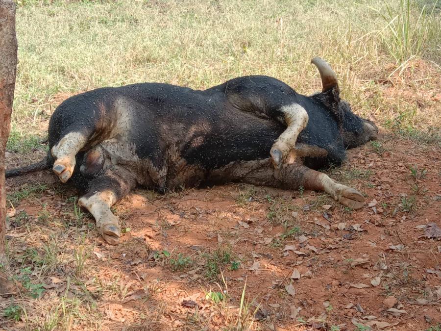 เจ้าหน้าที่หน่วยพิทักษ์อุทยานแห่งชาติเขาใหญ่ ขญ.4 (คลองปลากั้ง) ได้สนธิกำลังร่วมกับ เจ้าหน้าที่ตำรวจ สภ.วังน้ำเขียว ฝ่ายปกครองอำเภอวังน้ำเขียว และเขตห้ามล่าสัตว์ป่าเขาแผงม้า เข้าตรวจสอบที่เกิดเหตุบริเวณพิกัด 47 P 0795420 UTM 1589802 พบร่างกระทิงเพศผู้ขนาดใหญ่ นอนตายอยู่ใกล้กับแหล่งน้ำ สภาพศพเริ่มแข็งตัว