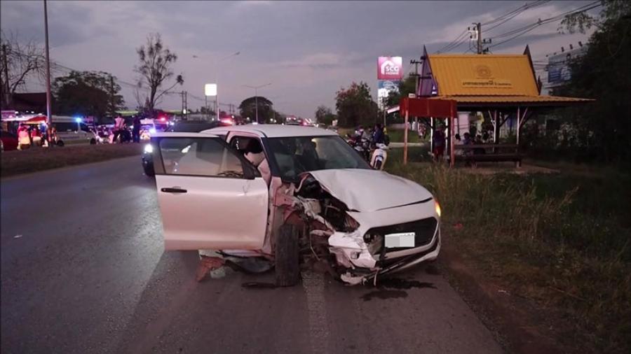 ที่เกิดเหตุพบรถยนต์เก๋งยี่ห้อซูซูกิ รุ่นสวิฟต์ สีขาว ทะเบียนอุดรธานี สภาพด้านหน้าฝั่งขวาพังเสียหายอย่างหนัก ถุงลมนิรภัยทำงานทั้งฝั่งคนขับและผู้โดยสาร มีนายจักรพงษ์ อายุ 30 ปี เป็นผู้ขับขี่ ใกล้กันพบรถจักรยานยนต์ยี่ห้อฮอนด้า 3 คัน สภาพพังเสียหายกระจัดกระจายบนเกาะกลางถนน