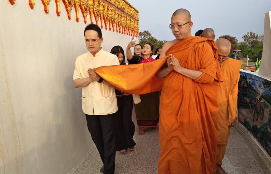 นายอำเภออุทุมพรพิสัย ลั่นฆ้องชัยเปิดงานบุญประเพณี สืบสานเดือนสาม บุญกุ้มข้าวใหญ่ ไหว้พระธาตุหนุนดวง ประจำปี2569 ที่วัดนาโนน ตำบลหนองไฮ อำเภออุทุมพรพิสัย จังหวัดศรีสะเกษ