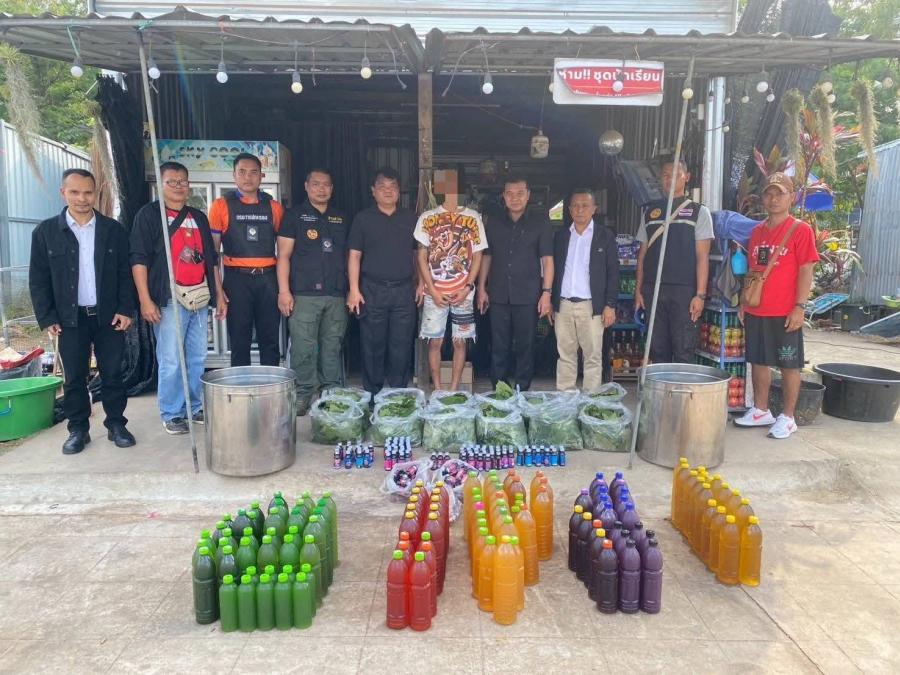อำเภอพึ่งได้ปรางค์กู่ลุยกวาดล้างสิ่งผิดกฎหมาย! จับน้ำกระท่อม–บุหรี่เถื่อน ยึดของกลางเพียบ