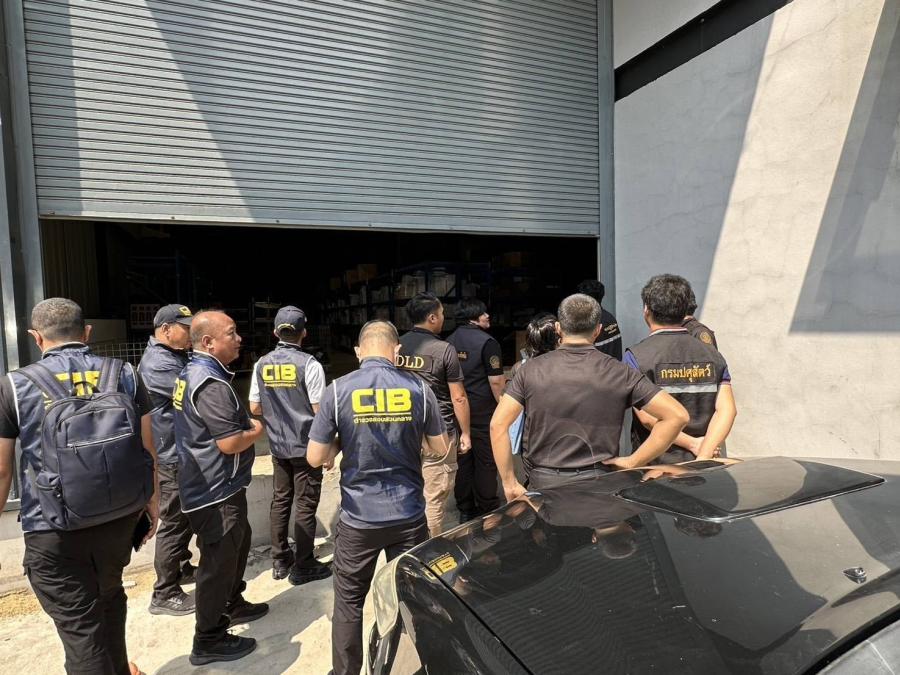 ต่อมาเจ้าหน้าที่ตำรวจ กก.2 บก.ปคบ. ได้รับหนังสือประสานจากกรมปศุสัตว์ ให้เข้าตรวจสอบสถานที่เก็บอาหารสัตว์ ในพื้นที่ อ.พระสมุทรเจดีย์ จ.สมุทรปราการ หลังสืบทราบว่า มีการเก็บสินค้าต้องสงสัยว่าเป็นอาหารสัตว์ไม่มีเลขทะเบียน