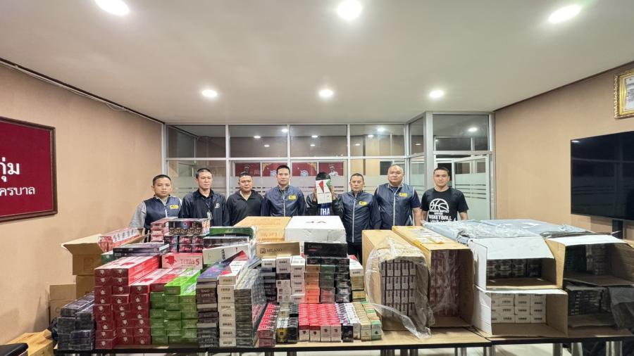 ปคบ. ทลายแหล่งจำหน่ายบุหรี่หนีภาษีย่านเสรีไทย ยึดของกลางกว่า 1.2 หมื่นซอง มูลค่า 5 แสนบาท