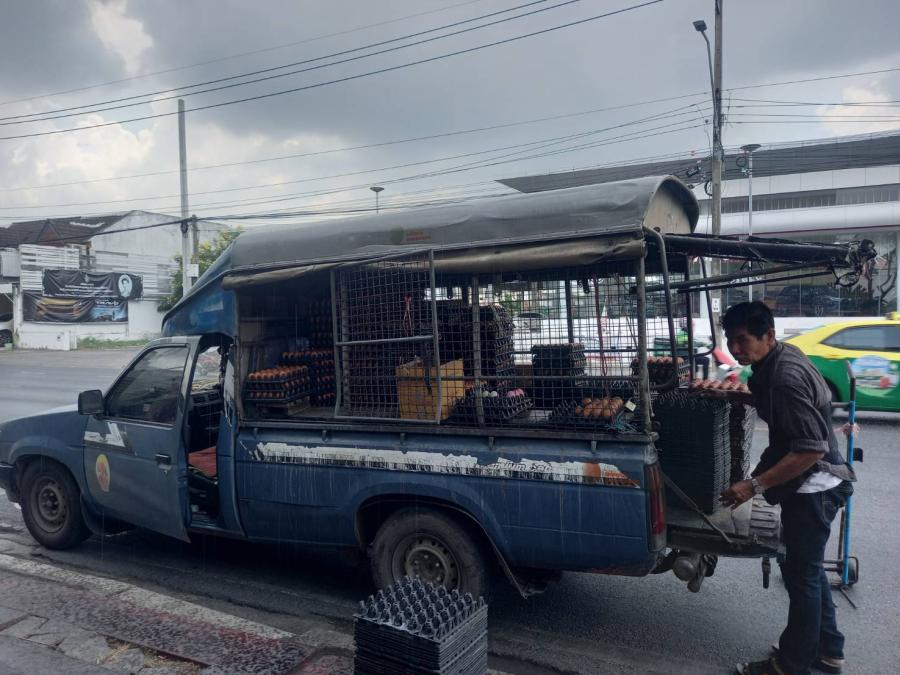 ”ราคาไข่คละหน้าฟาร์ม ได้ปรับขึ้นจาก 3.20 บาท เป็น 3.40 บาทต่อฟอง ส่วนราคาราคาขายปลีกนั้น ตนจะนำไปตามร้านค้าที่เป็นลูกค้าเจ้าประจำ หรือ จำหน่ายให้ลูกค้าปลีกทั่วไป โดยวิ่งรถขายไข่ไก่ต้นทาง วิ่งจาก อ.บ้านสร้าง จ.ปราจีนบุรี จำหน่ายตามรายทางเรื่อยไป เน้นเจ้าประจำคือตามร้านค้าที่รับซื้อประจำ และขายให้แก่ ลูกค้าทั่วไป หรือ บางวันที่ว่าง หลังส่งเจ้าประจำแล้ว จะแวะพักจอดขายตามตลาดนัดใหญ่ๆ บ้าง อีกทั้งยังวิ่งรถไปจำหน่ายไข่ไก่ตลาดหลัก ๆ ที่มาขายที่ จ.ปทุมธานี ”