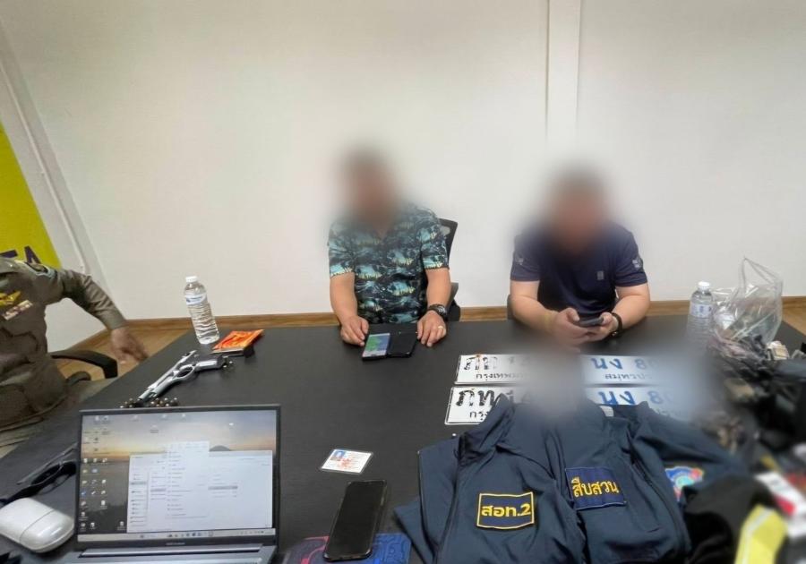 จากการตรวจค้นภายในรถตู้ เจ้าหน้าที่ถึงกับตะลึงเมื่อพบอุปกรณ์ที่ใช้ในการแอบอ้างเป็นเจ้าหน้าที่แบบครบวงจร ได้แก่