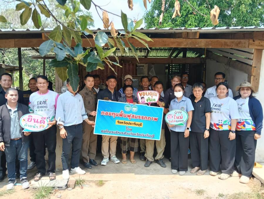 ปราจีนบุรี -“รองอุ๊” นายกฤษฎิ์ กษมพันธุ์ นายกองค์การบริหารส่วนจังหวัดปราจีนบุรี(อบจ.) พร้อมด้วยคณะผู้บริหาร ข้าราชการ และเจ้าหน้าที่กองทุนฟื้นฟูสมรรถภาพจังหวัดปราจีนบุรี ลงพื้นที่ตำบลสะพานหิน อำเภอนาดี เพื่อส่งมอบบ้านใน ”โครงการปรับปรุงสภาพแวดล้อมที่อยู่อาศัยให้แก่คนพิการ ผู้สูงอายุ ผู้ป่วยระยะกึ่งเฉียบพลัน และผู้ที่มีภาวะพึ่งพิง”