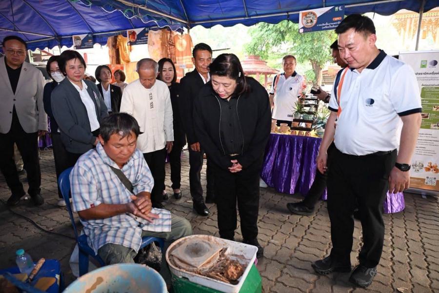 ในโอกาสนี้ ดร.วิภารัตน์ ดีอ่อง ผู้อำนวยการสำนักงานการวิจัยแห่งชาติ ร่วมกล่าวสนับสนุนการพัฒนานวัตกรรม และผศ.ดร.วีรชัย อาจหาญ ผู้ว่าการสถาบันวิจัยวิทยาศาสตร์และเทคโนโลยีแห่งประเทศไทย กล่าวรายงาน พร้อมนี้ นายประสงค์ หล้าอ่อน รองผู้ว่าราชการจังหวัดเชียงราย กล่าวต้อนรับ ณ ศูนย์ฝึกอบรมและสาธิตการแปรรูปวัสดุชีวภาพเพื่อการใช้ประโยชน์ระดับชุมชนวัดหนองปึ๋ง ตำบลจันจว้าใต้ อำเภอแม่จัน จังหวัดเชียงราย