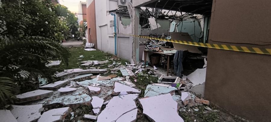 ที่เกิดเหตุเป็นบ้านทาวน์เฮ้าส์2ชั้น ปลูกติดกันจำนวนหลายหลังคาเรือนพบแรงระเบิดส่งผลให้บ้านเลขที่194/115 ซึ่งเป็นบ้านต้นเหตุได้รับความเสียหายทั้งหลังตัวบ้านหลังคาและผนังกำแพงกระจัดกระจายไปทั่วบริเวณ รถยนต์ที่จอดหน้าบ้านได้รับความเสียหาย รถจยย.ได้รับความเสียหาย1คัน ไม่มีผู้ใดได้รับบาดเจ็บส่วนบ้านข้างเคียงได้รับความเสียหายจากแรงระเบิดจำนวน8หลังคาเรือน