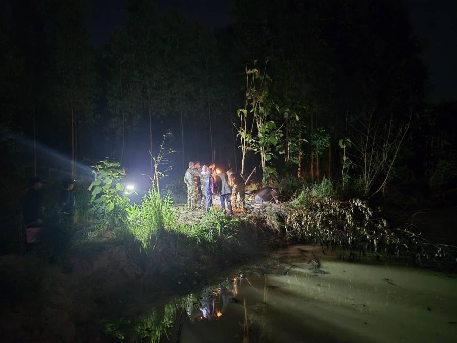 ในที่เกิดเหตุบริเวณพิกัด 48P 233624E 1585063N พบกระทิงถูกบ่วงสลิงแบบดีดรัดเข้าที่ขาหน้าด้านซ้ายอย่างรุนแรง และถูกพันติดอยู่กับต้นไม้จนไม่สามารถเคลื่อนไหวได้ นายคทาวุธ กันยามา หัวหน้าเขตจัดการอุทยานฯ ที่ 4 จึงประสานคณะสัตวแพทย์จากสำนักบริหารพื้นที่อนุรักษ์ที่ 7 (นครราชสีมา) เข้าให้ความช่วยเหลือฉุกเฉิน