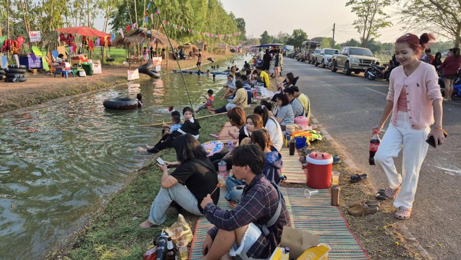 คนอำนาจเจริญยึดคลองส่งน้ำเล่นสงกรานต์คึกครื้นท่ามกลางอากาศร้อนระอุกว่า 40 องศา