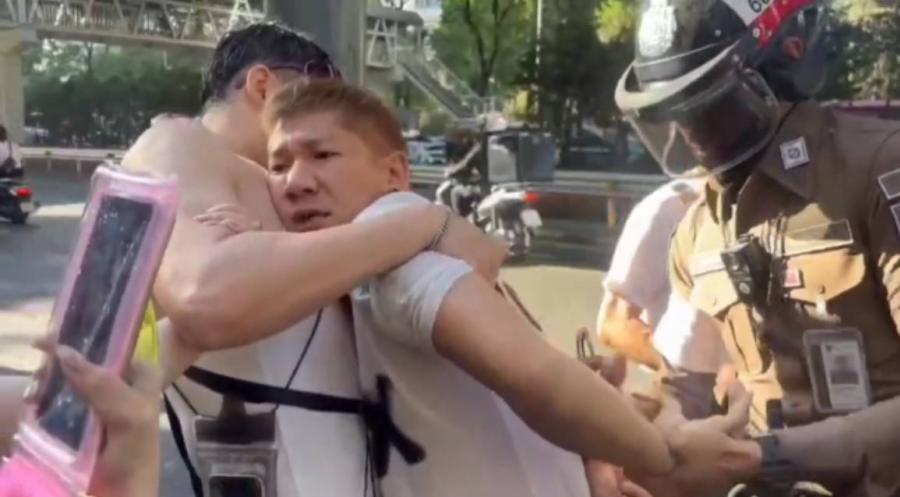 พฤติการณ์บานปลาย เมื่อผู้ถูกจับเห็นบัตรผู้สื่อข่าว กลับมีอาการคลุ้มคลั่งและพยายามพุ่งเข้าใส่เพื่อทำร้ายร่างกายผู้เสียหาย จนเกิดการปะทะกันเล็กน้อยก่อนที่ผู้เสียหายจะหลบเลี่ยงออกมาได้ ทันใดนั้น ส.ต.ท.ดุลยวัต ชมชื่น ผบ.หมู่ (ป) ช่วยงาน จร. สน.ปทุมวัน ซึ่งปฏิบัติหน้าที่อำนวยความสะดวกจราจรอยู่ในละแวกนั้น ได้ยินเสียงร้องขอความช่วยเหลือจึงรีบเข้าไประงับเหตุและควบคุมตัวนายเมธาสิทธิ์ไว้ได้ทันท่วงที