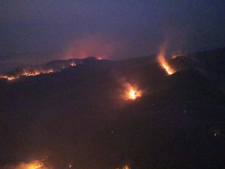 ช่วงค่ำของวันที่ 14 เม.ย. ทีมอาสาสมัครได้นำโดรนขึ้นบินสำรวจพื้นที่ พบแนวไฟหลายจุดอยู่ในระยะใกล้ชุมชน แต่ยังไม่สามารถเข้าดับไฟได้ทันที เนื่องจากข้อจำกัดด้านทัศนวิสัยในเวลากลางคืน เส้นทางที่มีความลาดชัน และความไม่คุ้นเคยของพื้นที่
