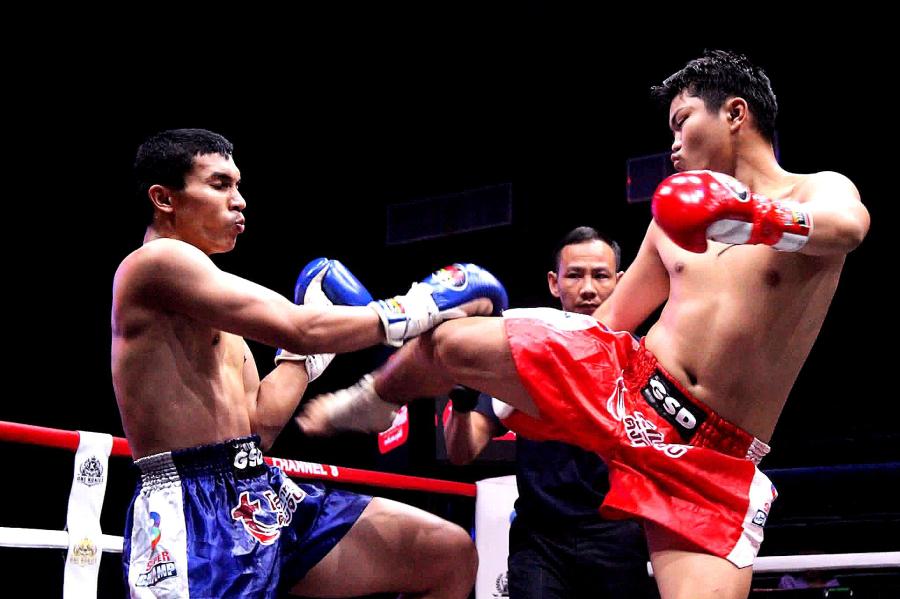 - คู่ที่ 3 มวยไทย 3 ยกพิกัด 54 ก.ก. ด่วน บ.ข.ส. ตาลสุมมวยไทย เจ้าหนูวัย 15 ปีจากอุบลราชธานีถึงเสียเปรียบรูปร่าง โจว ซุน ชิง จากจีนแต่เดินออกอาวุธมวยไทยครบเครื่องชนะคะแนนไปสนุกสะใจกองเชียร์