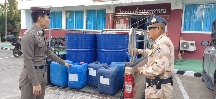 ตั้งด่านสกัดตรวจยึดรถกระบะ4คันบรรทุกน้ำมันกว่า 3 พันลิตรตรวจสอบที่อำเภอพบพระ