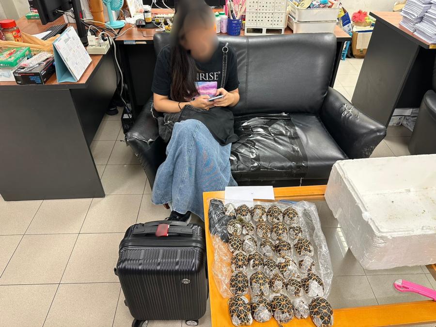 กรมศุลกากรผนึกกรมอุทยานฯสกัดจับสาวไต้หวันพยายามลักลอบขนเต่าดาวอินเดียออกนอกประเทศ